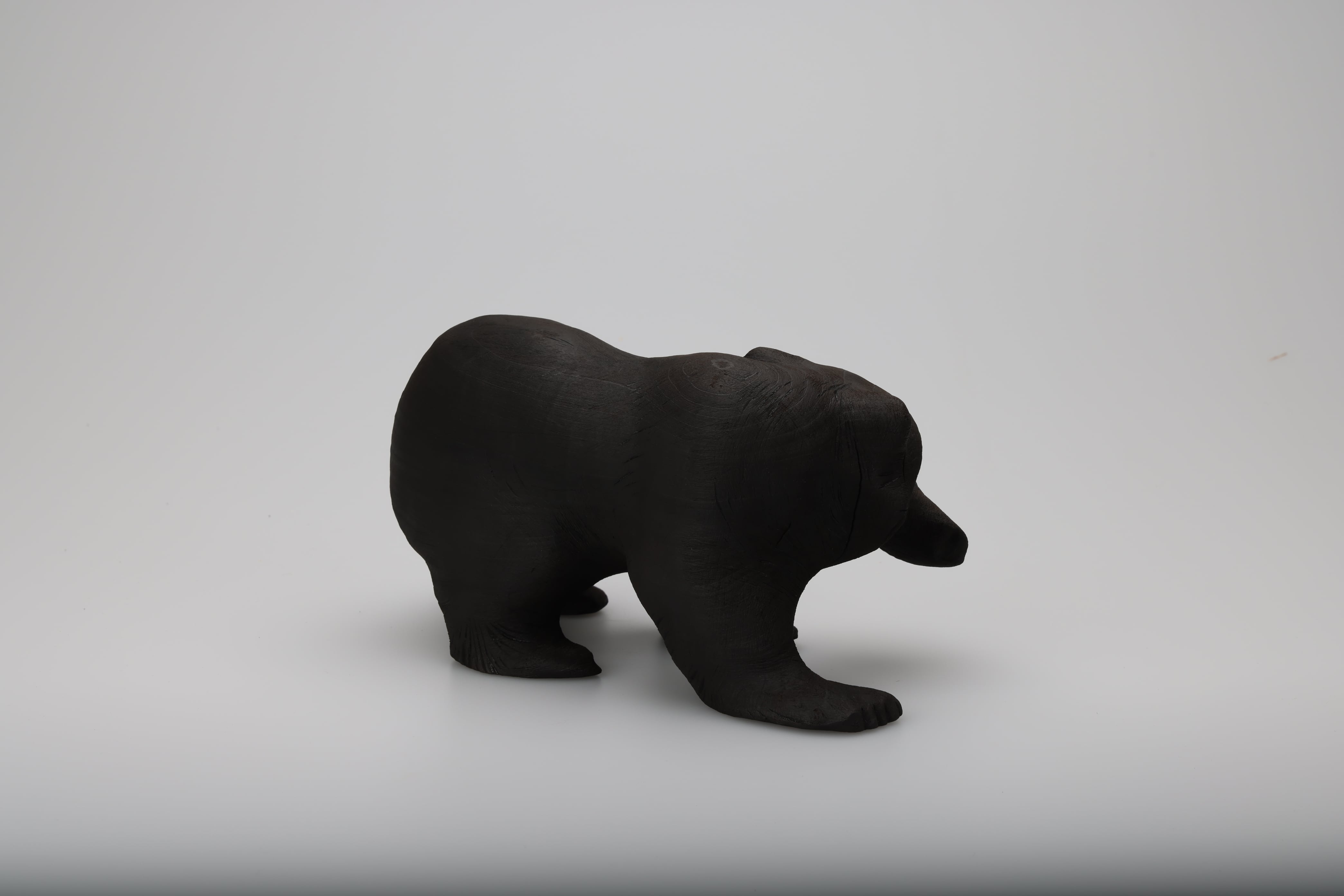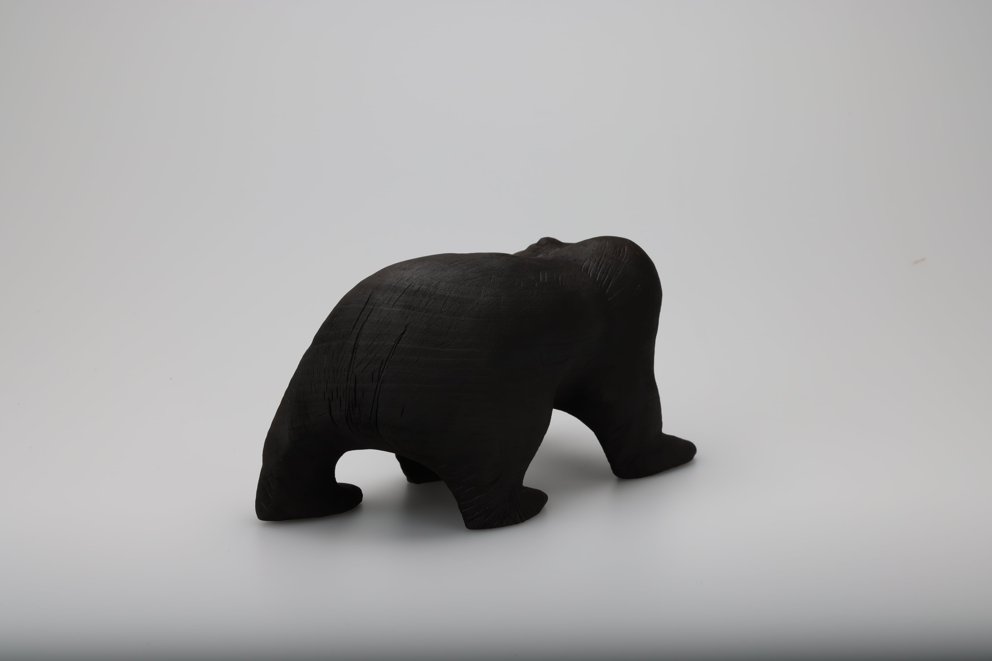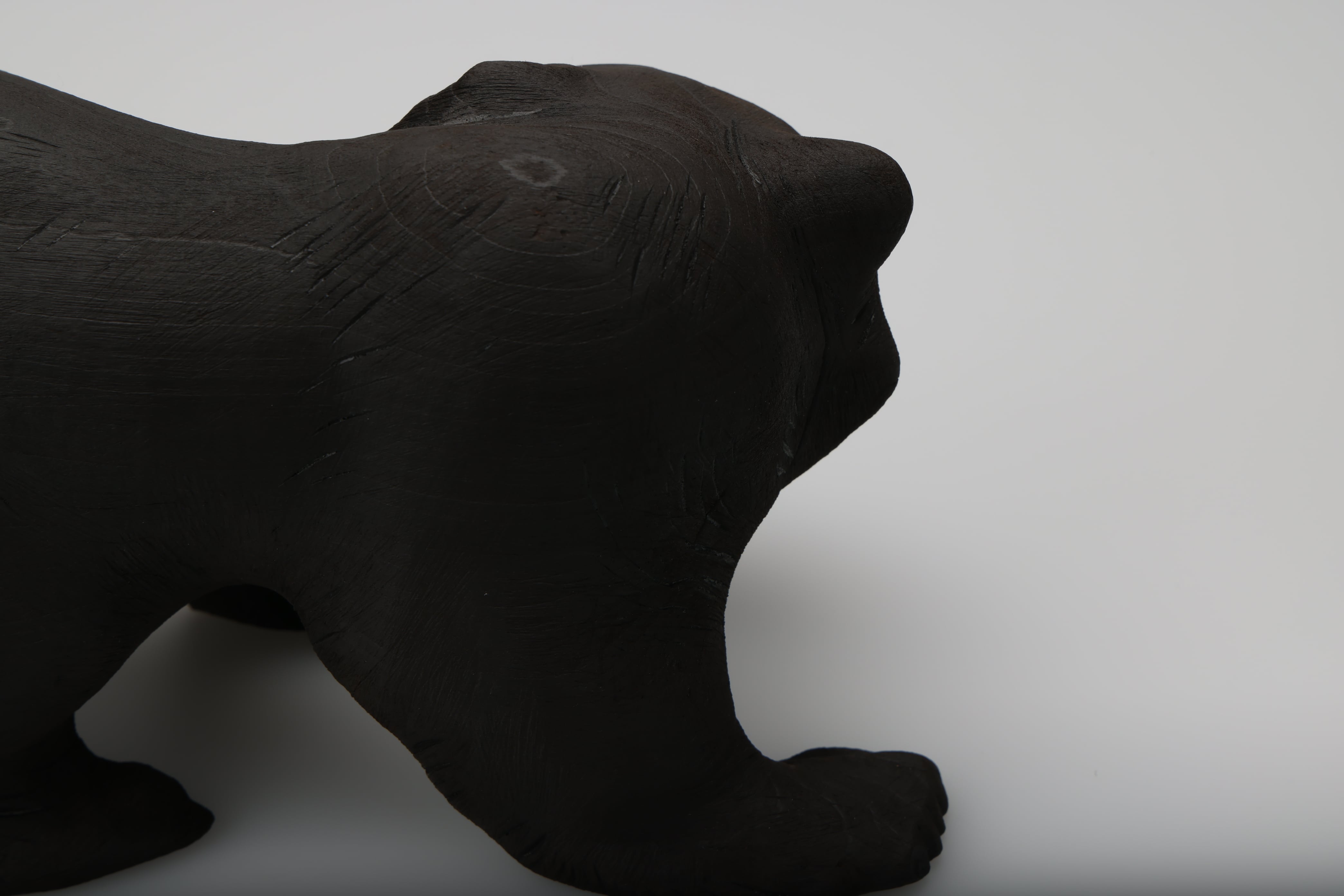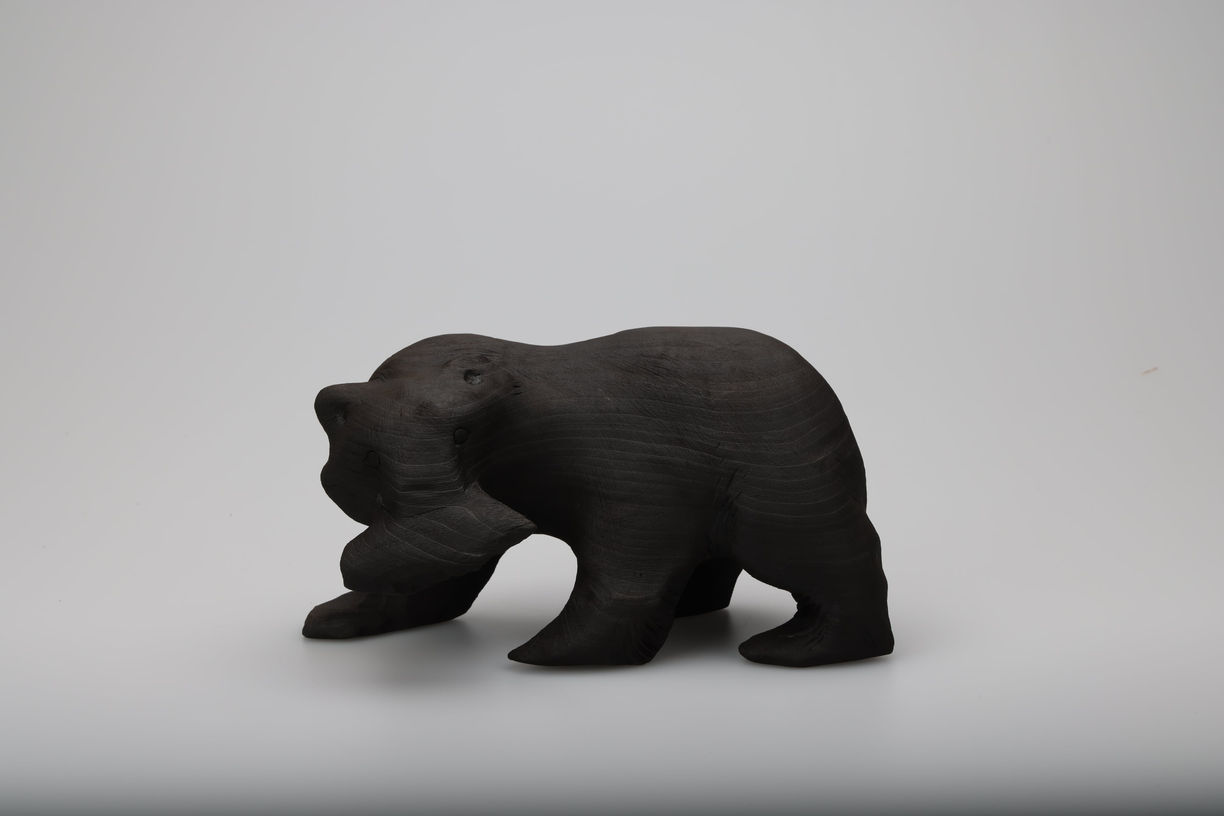 木彫りの熊の表面を燃焼させることで再生を試みました。