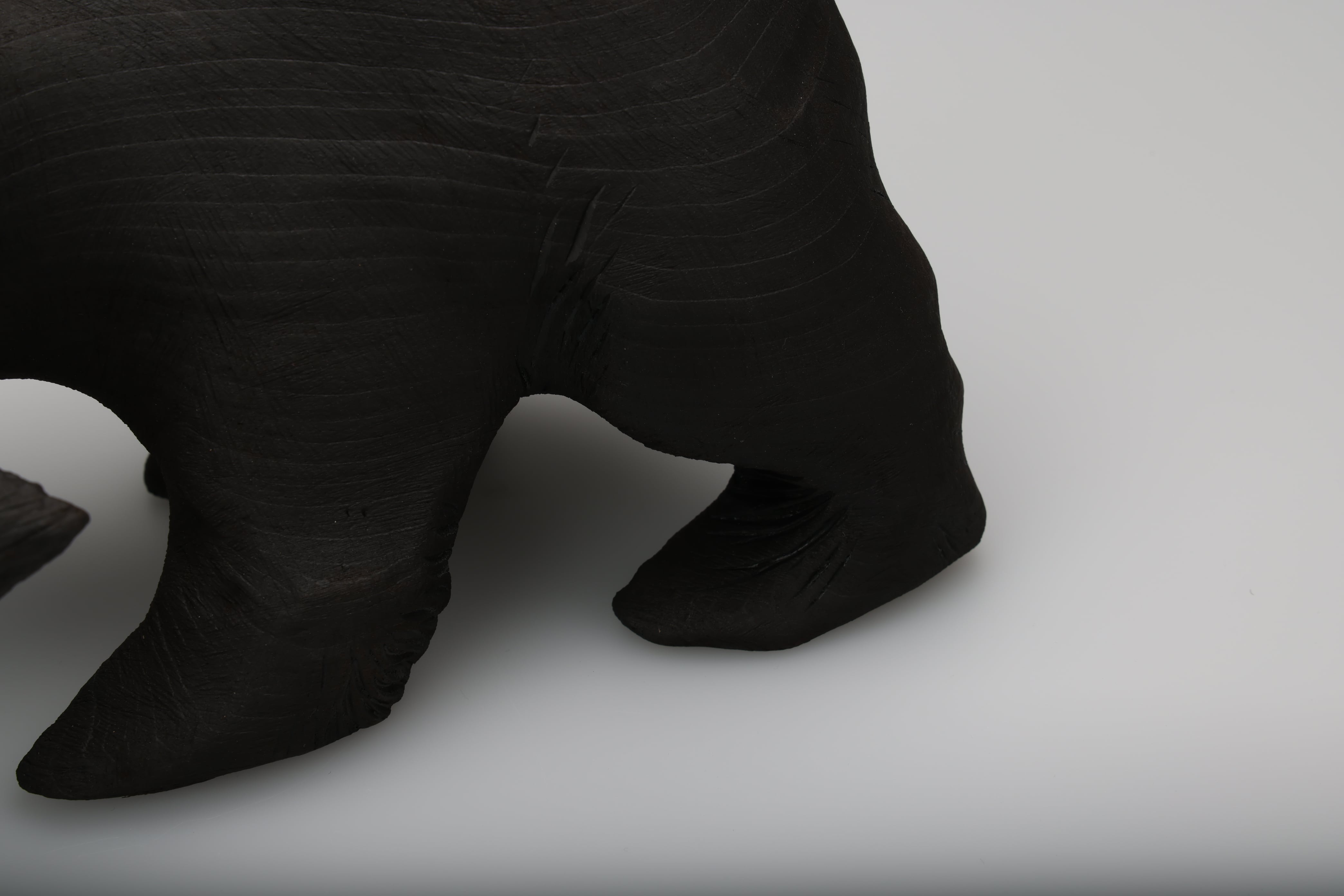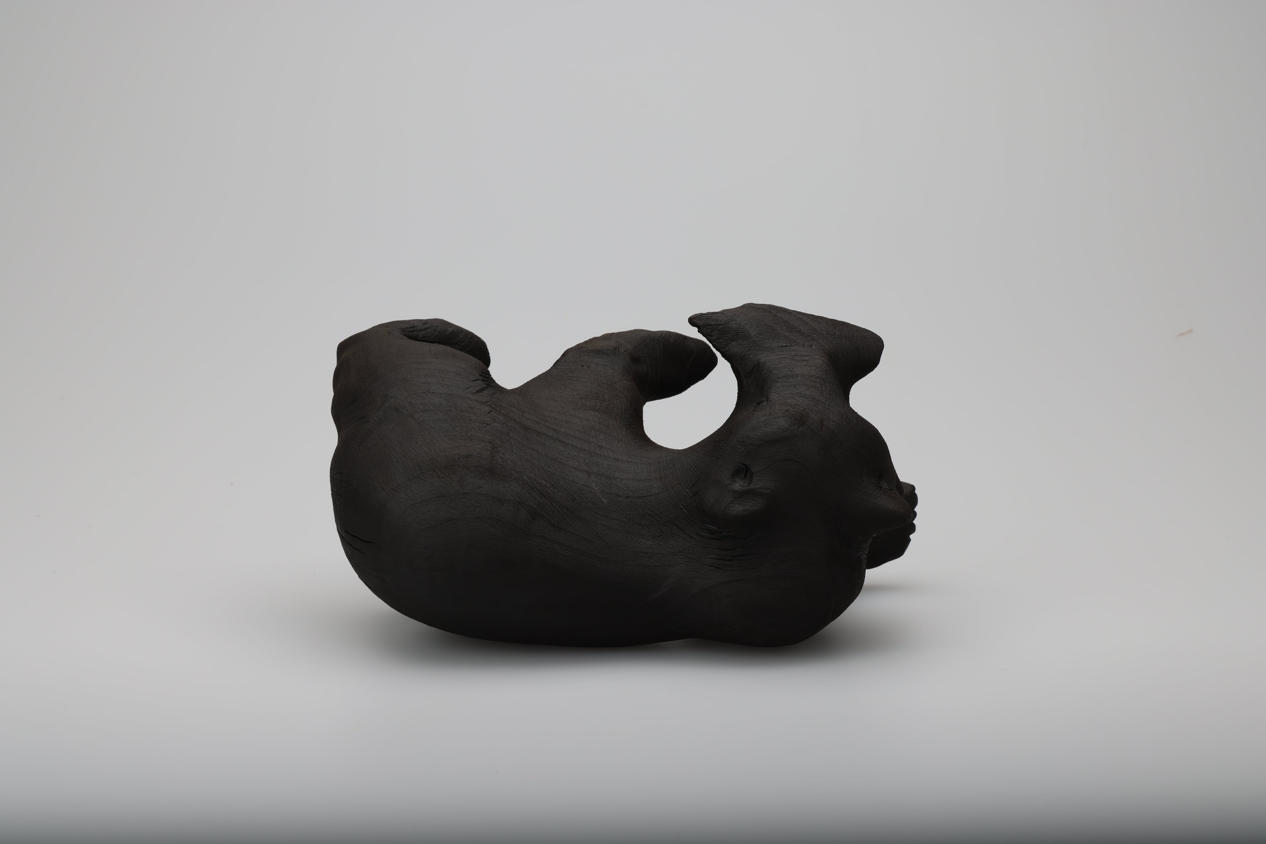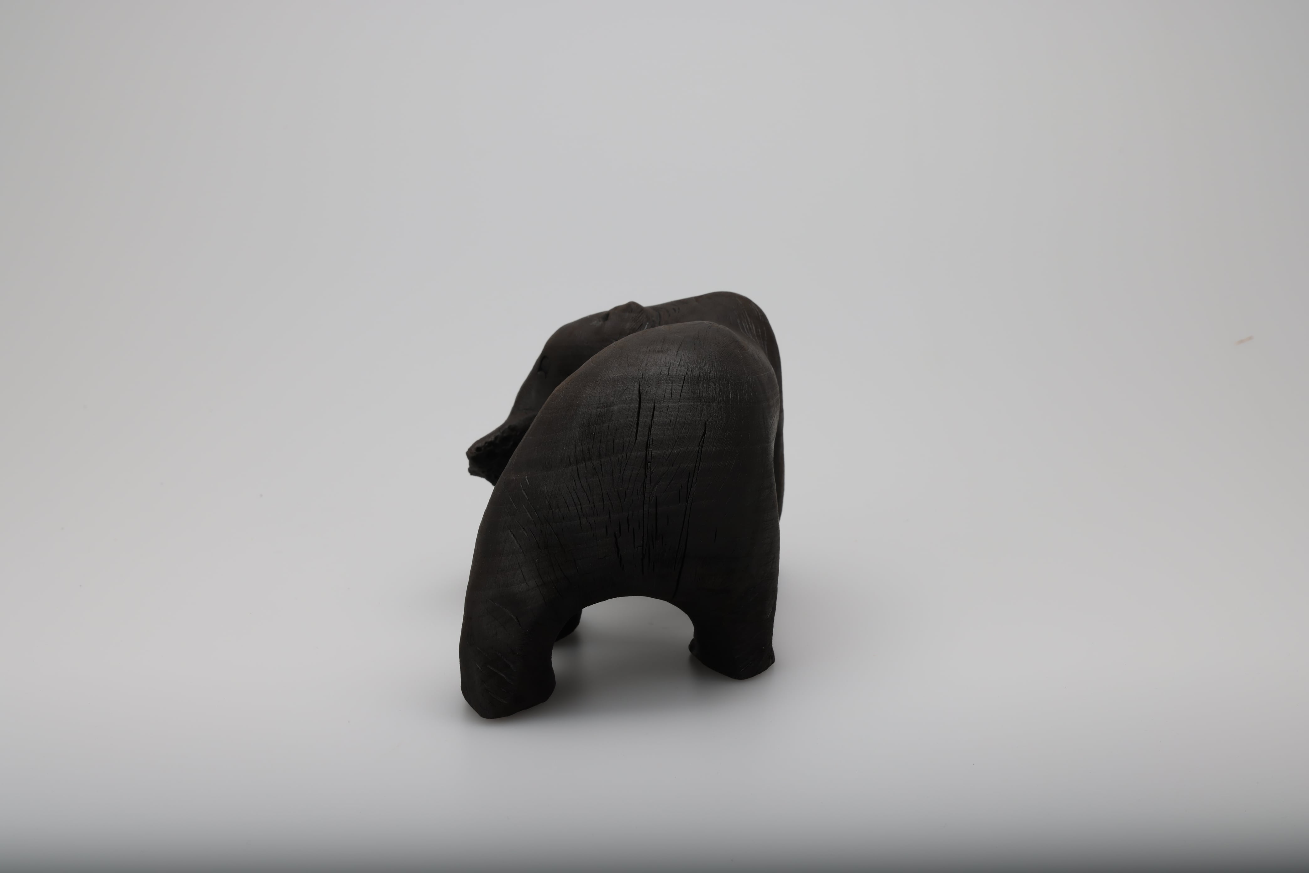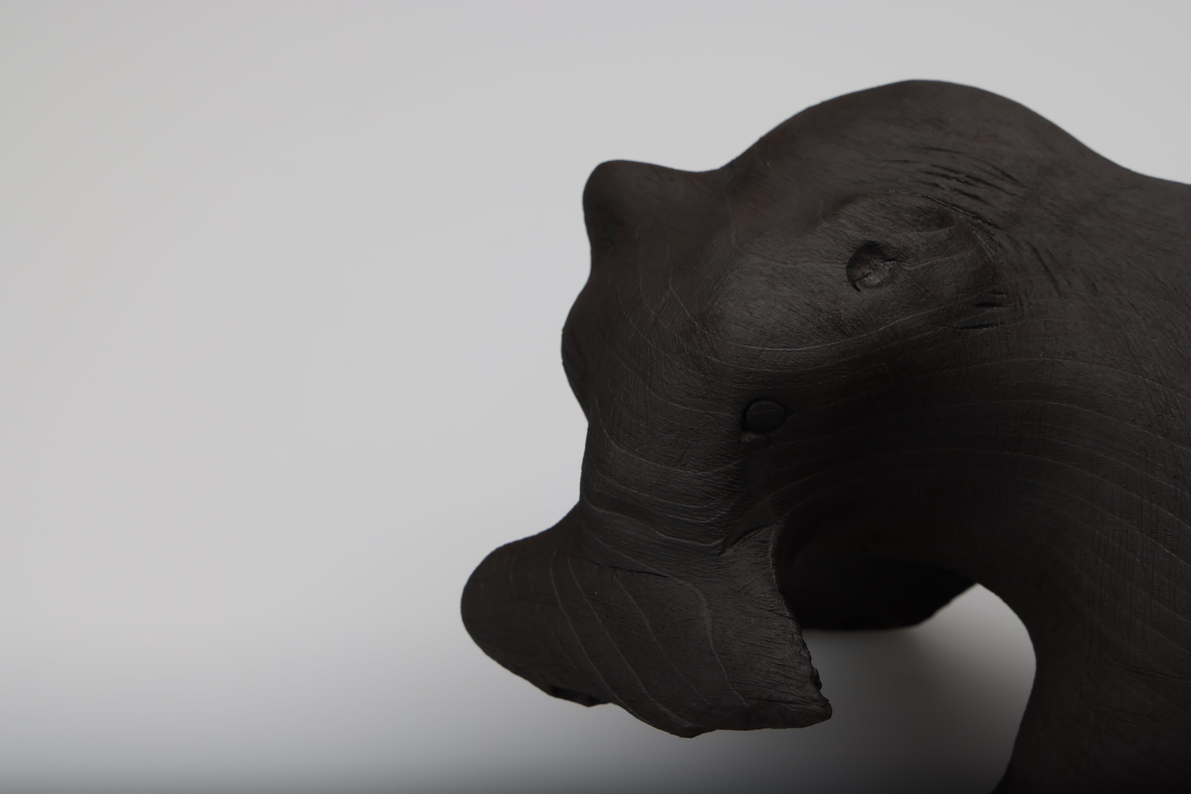 木彫りの熊の表面を燃焼させることで再生を試みました。